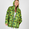 When you purchase an INSANE IN THE RAIN jacket you help reduce the unnecessary production of virgin plastic rain jacket fabric and simultaneously, upcycle from 17 to 23 plastic bottles that would otherwise roam our oceans. Also, your INSANE print helps by spreading awareness and getting the message out in the world to refuse single-use plastic.